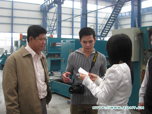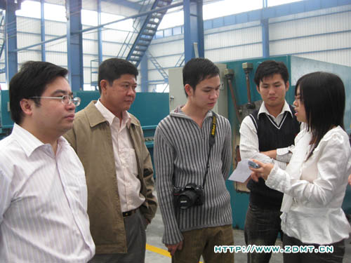 KONG KHEANG师(shi)长教师(shi)已跟咱们(men)经由过程(cheng)收集(ji)和德律风接洽了近一(yi)个(ge)月,对(dui)中(zhong)德机床表(biao)现(xian)了激烈的(de)(de)采办需(xu)要(yao)。这(zhei)次(ci)特地(di)访问中(zhong)德,恰(qia)是(shi)为了洽商有(you)关双机事件,趁便实(shi)地(di)考查(cha)。KONG KHEANG师(shi)长教师(shi)处置板料加(jia)工(gong)(gong)多年,对(dui)机器(qi)的(de)(de)操纵是(shi)驾轻就(jiu)熟,今朝本身(shen)的(de)(de)工(gong)(gong)场(chang)里也有(you)几台(tai)被撕去标牌的(de)(de)中(zhong)国机床。这(zhei)一(yi)次(ci),实(shi)其实(shi)在(zai)的(de)(de)看到(dao)中(zhong)德的(de)(de)机床今后(hou),光(guang)(guang)光(guang)(guang)是(shi)机身(shen)油漆(qi)的(de)(de)光(guang)(guang)亮(liang),全体的(de)(de)表(biao)面(mian),就(jiu)使(shi)他很冲(chong)动,亲(qin)身(s💖hen)休(xiu)会(hui)了一(yi)下咱们(men)一(yi)台(tai)正(zheng)在(zai)调试的(de)(de)折弯机,而(er)后(hou)心对(dui)劲足的(de)(de)笑了。