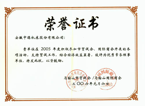 我公司获2005年度市贸促会、国际商会优异常务理事单元